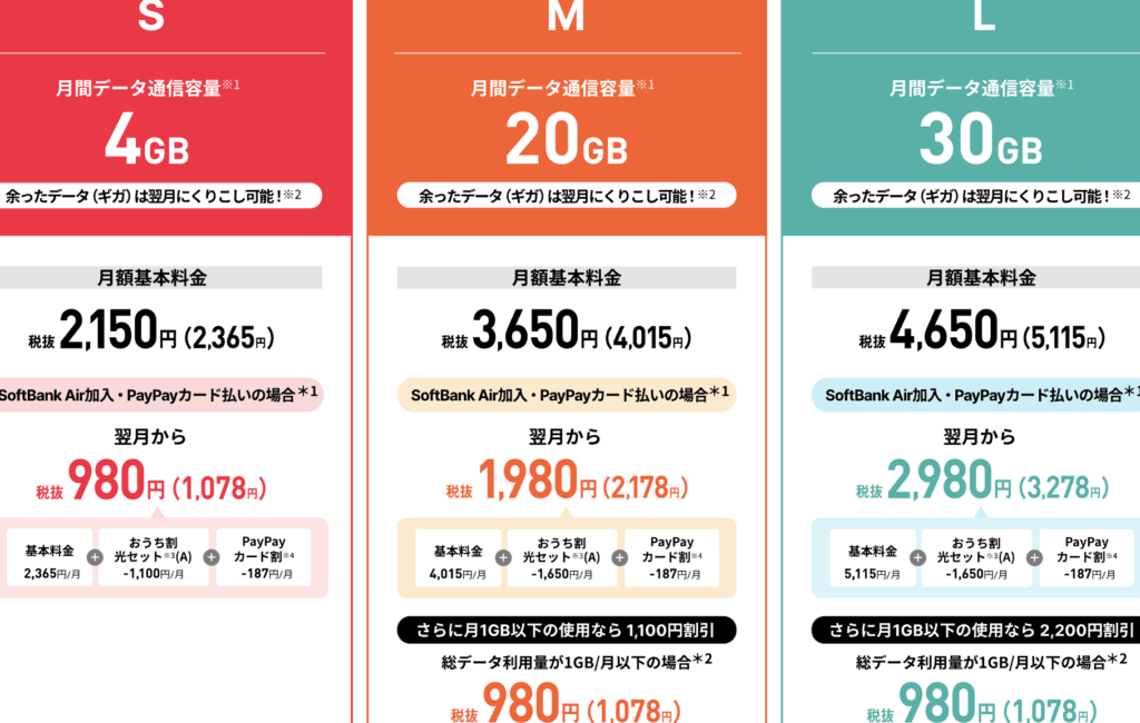 | ソフトバンク | 基本プラン | 3,980円 | 複数のオプションが付いているが高め |