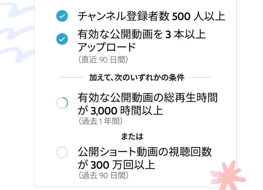 収益化を達成するには、特定の条件を満たす必要があります。以下の要件を理解することで、YouTubeでの成功に近づけます。