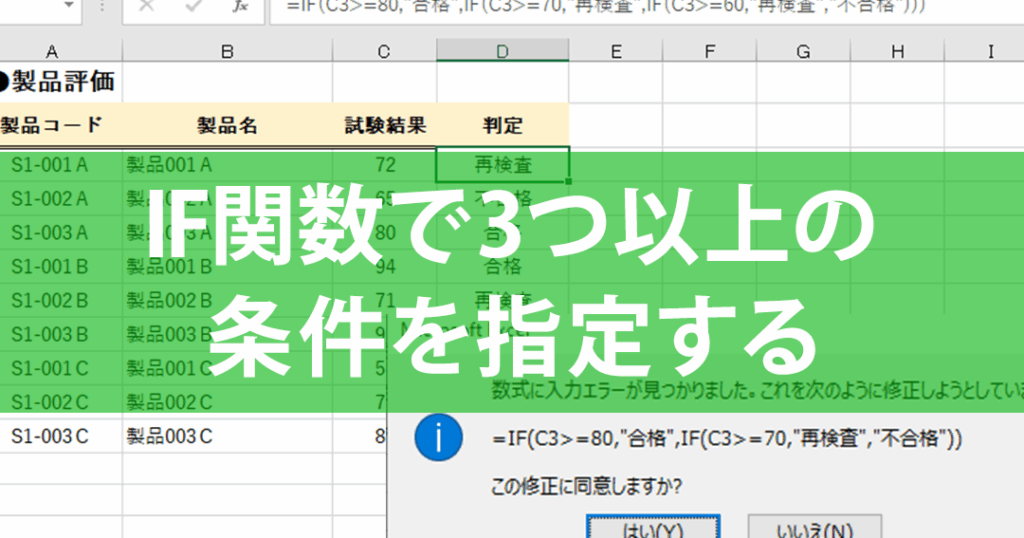 3つの条件を適用したif関数の使い方