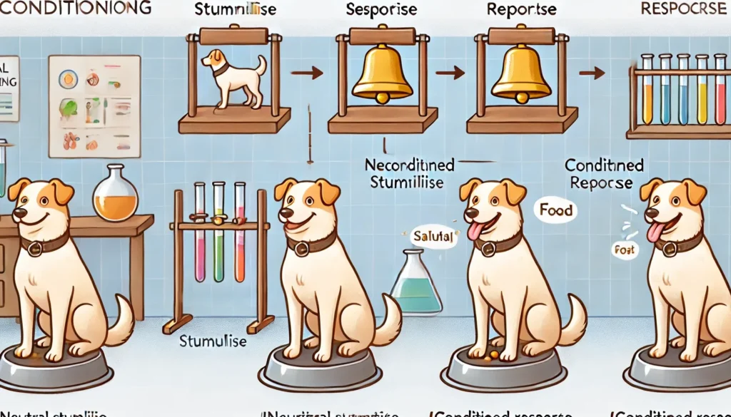 イワン・パブロフによる実験は、古典的条件付けの実証的証拠を提供しました。彼は犬を使い、以下の手順を踏みました: