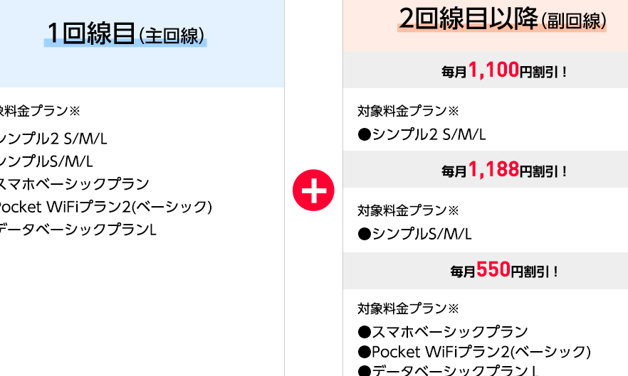 ワイモバイルの家族割では、以下のような割引が適用されます。