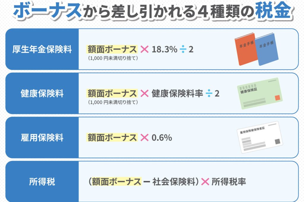 - ボーナス額によって税率が異なるため、計算が必要。