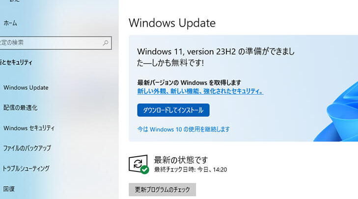 Windows Updateを介してのアップグレードは、以下のステップで進めます。
