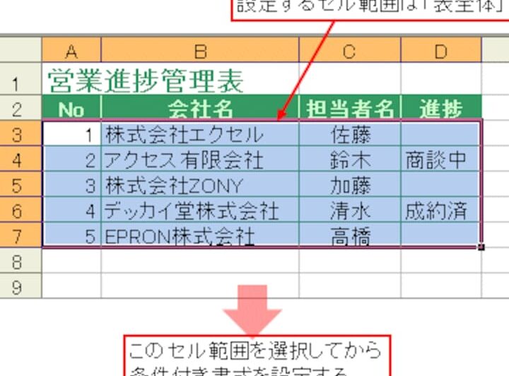 条件付き書式を活用する具体的な方法として、2つの例を挙げる。これらは行ごとの視覚的な強調を効果的に行える。