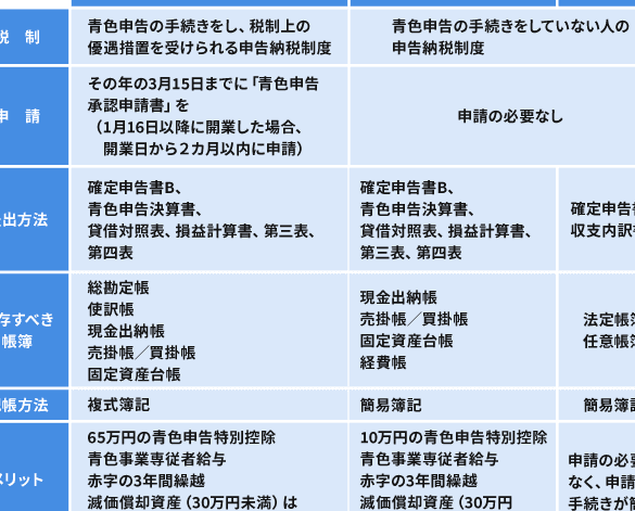 事業者は、税務署に青色申告の申請を 行い、承認を受ける必要があります。これにより、青色申告控除が適用されます。さらに、青色申告を選択することで、帳簿の管理や経費の計上が行いやすくなります。