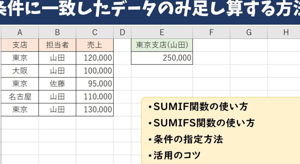 このように、SUMIFS 関数は、ニーズに応じた合計を得る強力な手段です。
