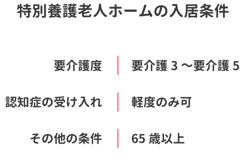 特別養護老人ホームに入居するためには、いくつかの条件を満たす必要があります。これらの条件は、利用者が必要とする支援内容に基づきます。