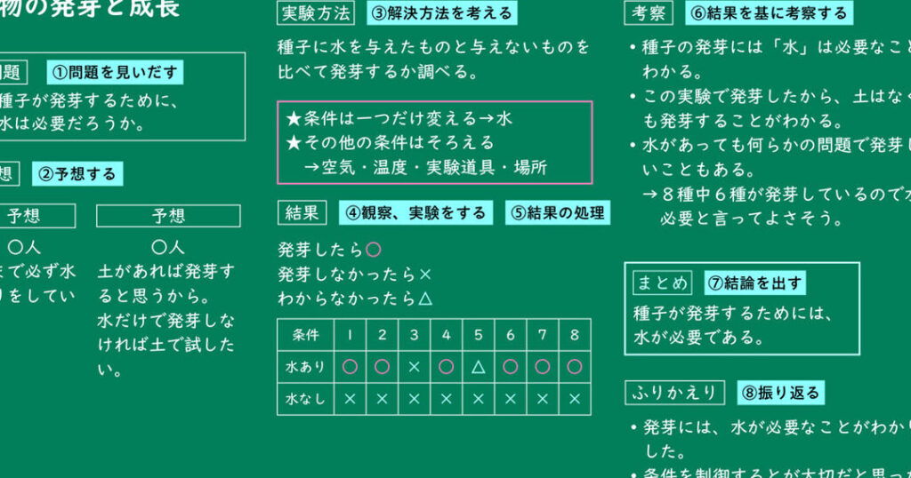 - 水分: 種が水分を吸収することで、酵素が活性化します。これにより、代謝が促進され、細胞分裂が始まります。
