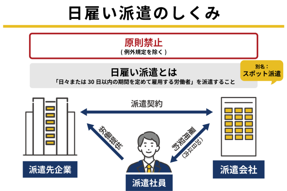 日雇い派遣とは、労働者が特定の派遣会社を通じて、短期の雇用契約を結び、必要な時に働く形式のことです。主に、以下のような特徴があります。