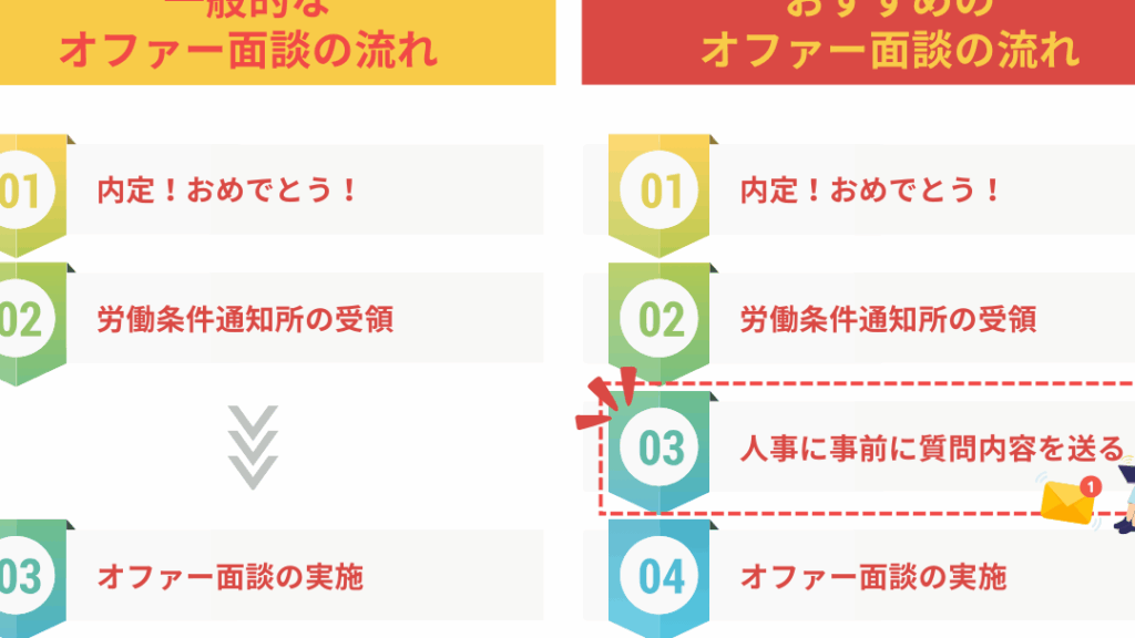 求職者の視点から見ると、オファー面談は次の目的があります。