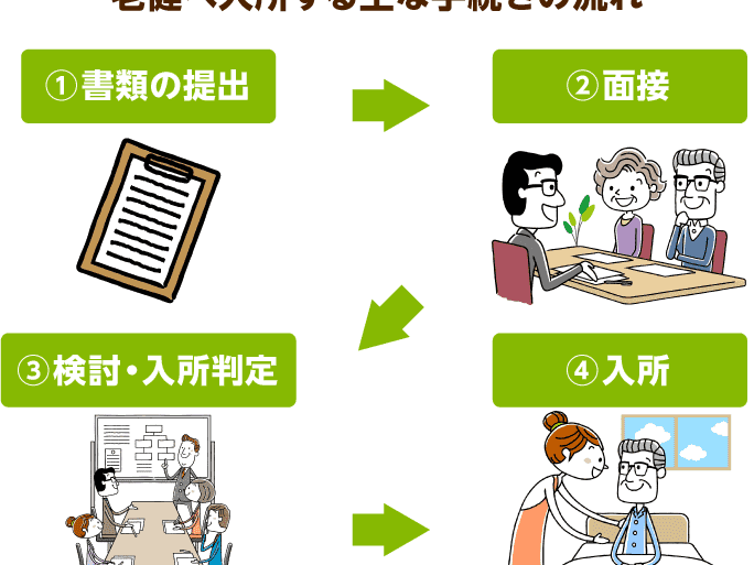 老健への入所手続きは、いくつかの重要なステップを経る必要があります。このプロセスを理解することで、入所を円滑に進めることが可能です。以下に、主なステップをまとめました。