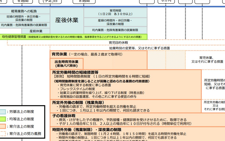 日本では、産休は法律に基づいており、次のような特徴があります。