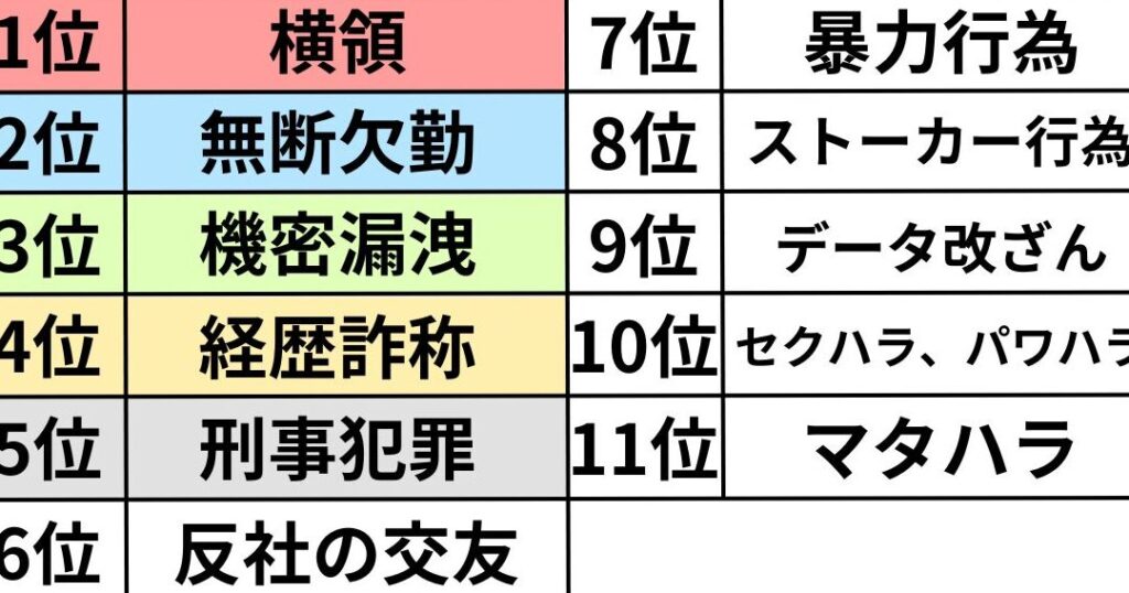 懲戒解雇 理由 ランキングの概要