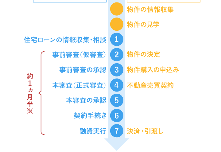 - 本審査 – 金融機関が信用情報などを基に審査を行う。
