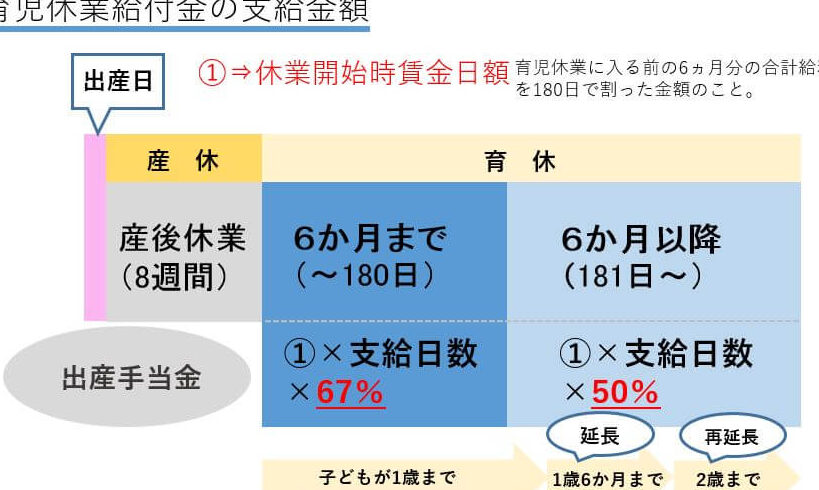 - 育休の取得期間:育休手当は、子どもが1歳になるまでの間に支給されます。特別な事情がある場合、2歳まで延長可能です。