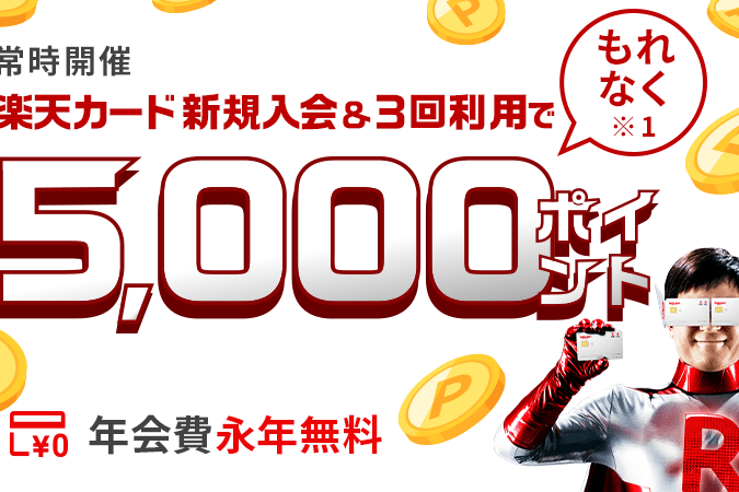 - 新規登録特典: 新たに楽天カードに申し込むと、初回利用時に5,000ポイントプレゼント。