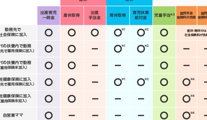 雇用保険の産休手当は、他の支援制度といくつかの点で異なる特徴を持っています。以下にその違いを示します。