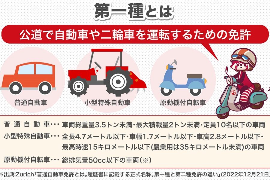 - 第一種普通免許:一般の自動車を運転するための免許。