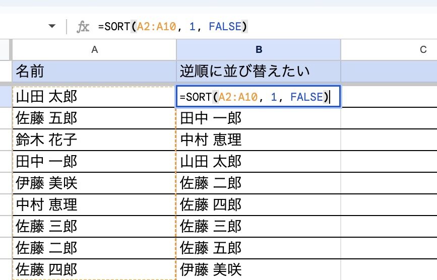 スプレッドシート ソートの注意点