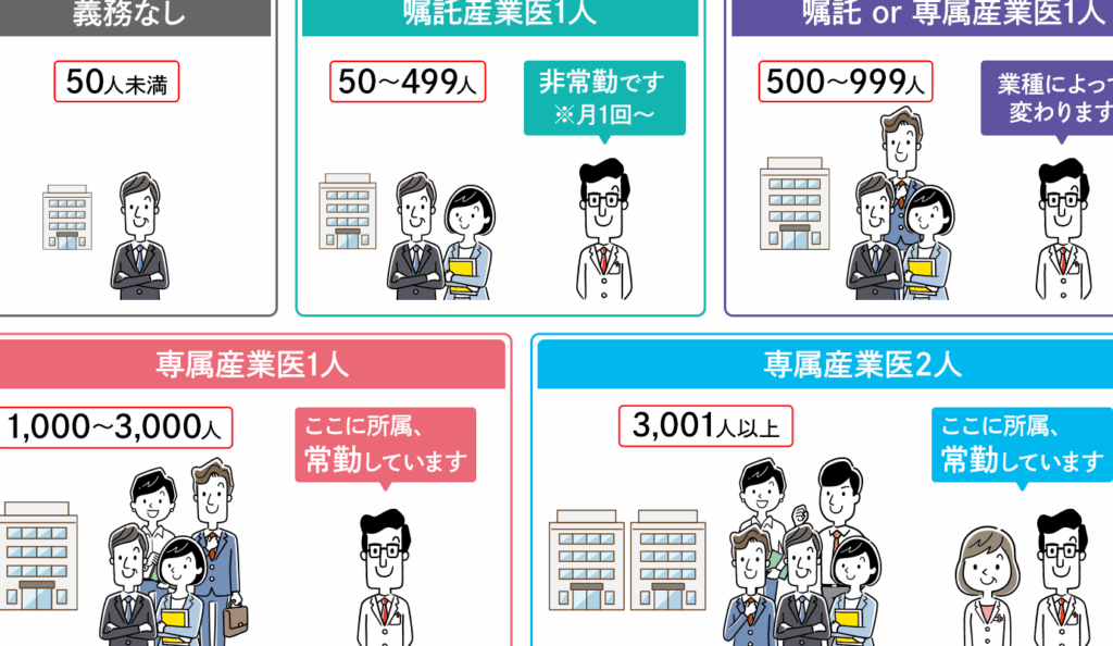 企業規模:常時50人以上の従業員がいる場合、専属産業医の配置が求められます。