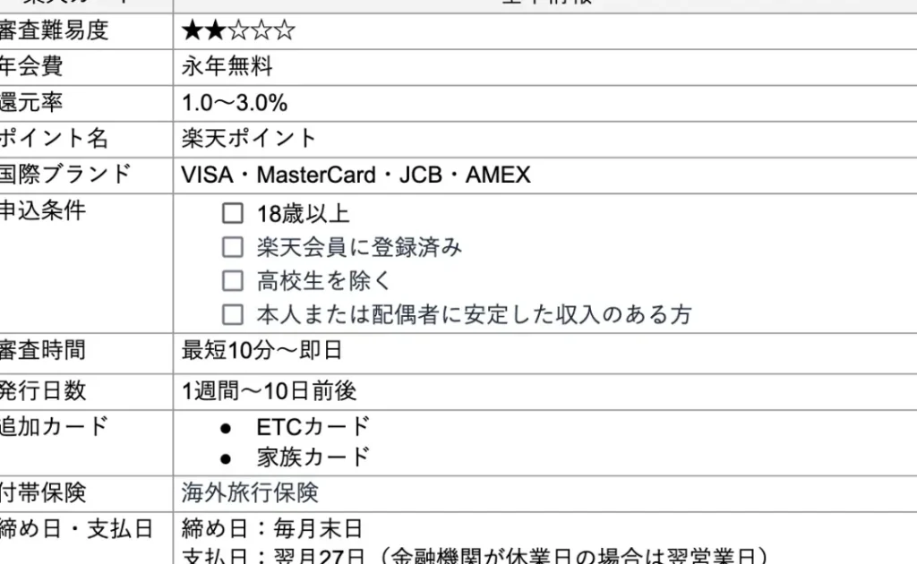 - 類似カードとの比較 – 楽天カードと他のクレジットカードの比較分析を行い、各カードの利点を示しているコンテンツ。
