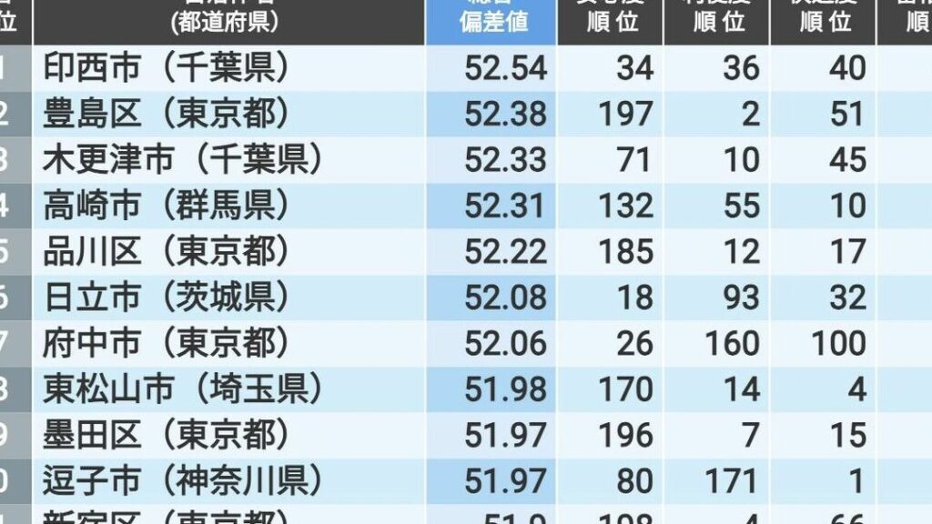 日本の住みやすい街ランキング