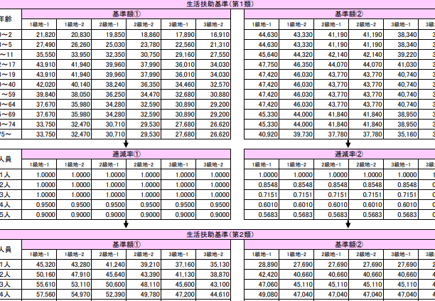 地域によって支給される金額には差異があるため、具体的な額を確認することが重要です。以下は、地域別の基本的な生活費の目安です。