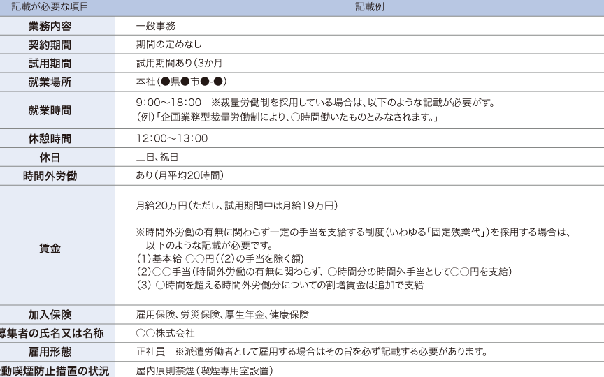 求人票には、求職者にとって重要な情報が多く含まれています。以下に、求人票の必須項目を具体的に示します。
