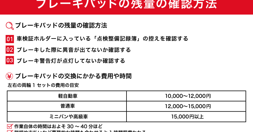 - コストの低減: 定期的に残量をチェックすることで、パッドの早期交換が可能となり、費用を抑えられます。