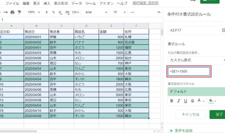 スプレッドシートの条件付き書式とは