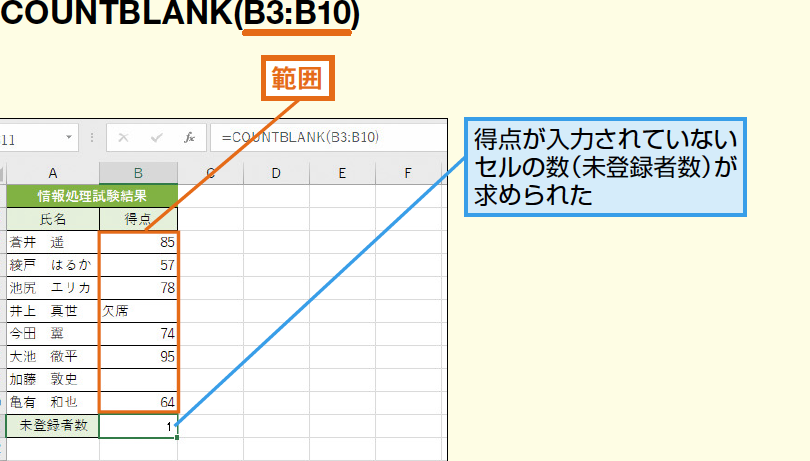 この範囲に対して、空白のセルを数えます。さらに、特定の条件を加えることで、特定のデータに基づいて分析が可能になります。