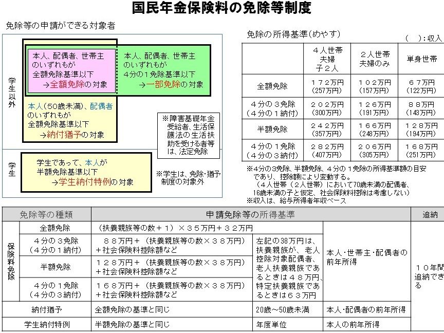 - 学業専念:学業に集中するために働けない場合も、免除対象となります。