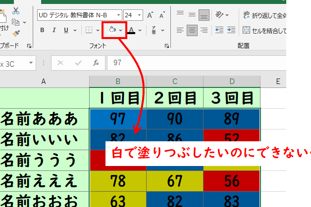 行が塗りつぶせない原因