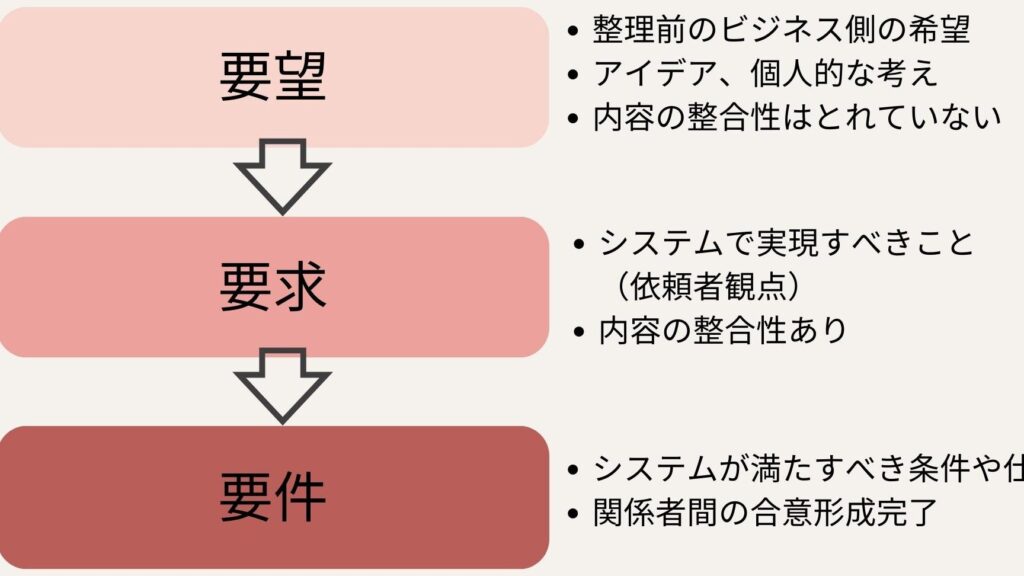 このように整理することで、要件定義書が明確かつ理解しやすくなります。