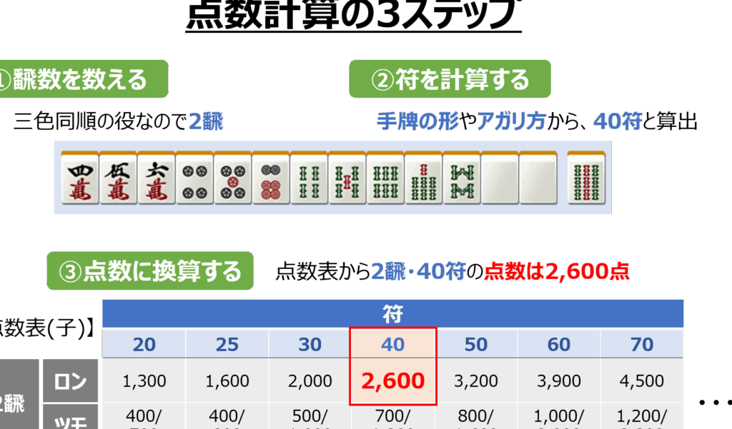 条件計算には、自動計算ツールを活用する方法や手動で計算するテクニックがあります。これらの手法を理解することで、麻雀のプレイ時に役に立ちます。