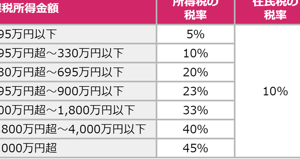 所得税の税率は、私たちの課税所得に基づいて段階的に異なる。日本では課税所得が増えることにより、適用される税率も上がる仕組みになっている。正確に理解するために、以下の詳細を確認しよう。