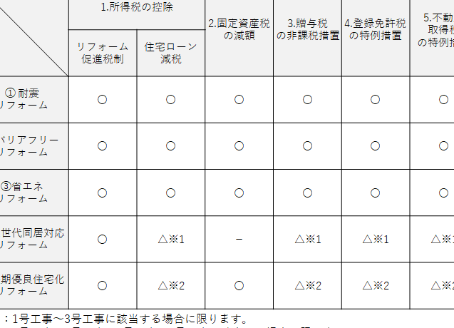 条件を満たす改修を行えば、税金の軽減が期待できます。また、具体的な工事内容や規模によって控除額が異なることもあります。
