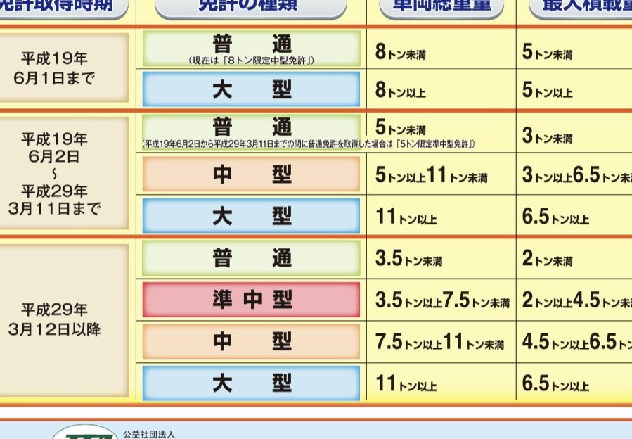 中型免許は、最大積載量が 7.5トン未満 の普通車両や、定員が 10人以上 のバスの運転を許可します。具体的には、以下の要件を満たします。