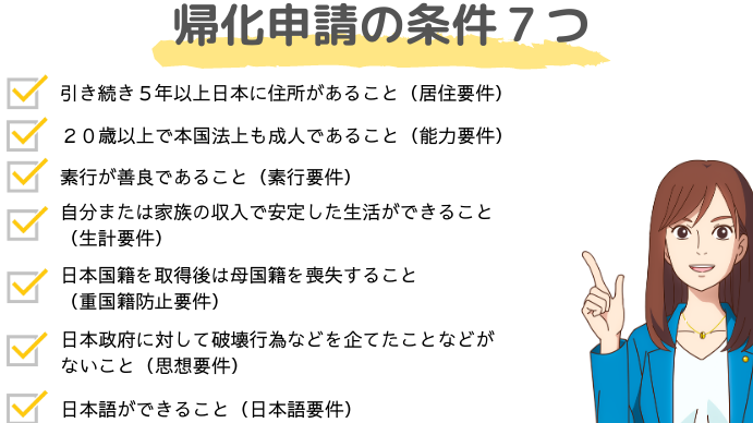 日本に帰化するためには、いくつかの基本要件があります。これらの要件を満たすことで、手続きが円滑に進むことが期待できます。