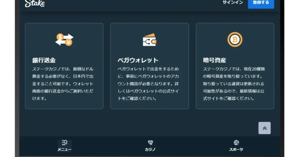 ステークカジノでは、さまざまな出金方法が提供されており、それぞれの特徴を理解することで、出金手続きが円滑に進みます。以下に具体的な出金方法を説明します。
