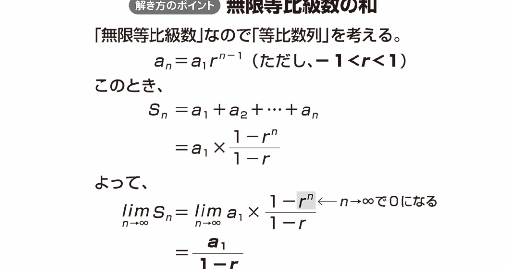 無限等比級数は、数学において重要な役割を果たします。この概念は、特に収束の条件と深く関連しています。無限等比級数の理解は、数理論理や数列の分析に役立ちます。