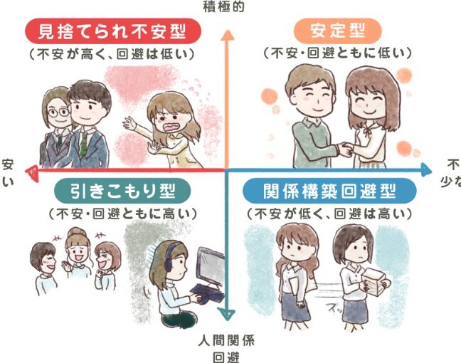 愛着には主に4つのタイプがあり、それぞれが人間関係や心の健康に与える影響が異なります。以下にそれぞれの愛着の種類を示します。