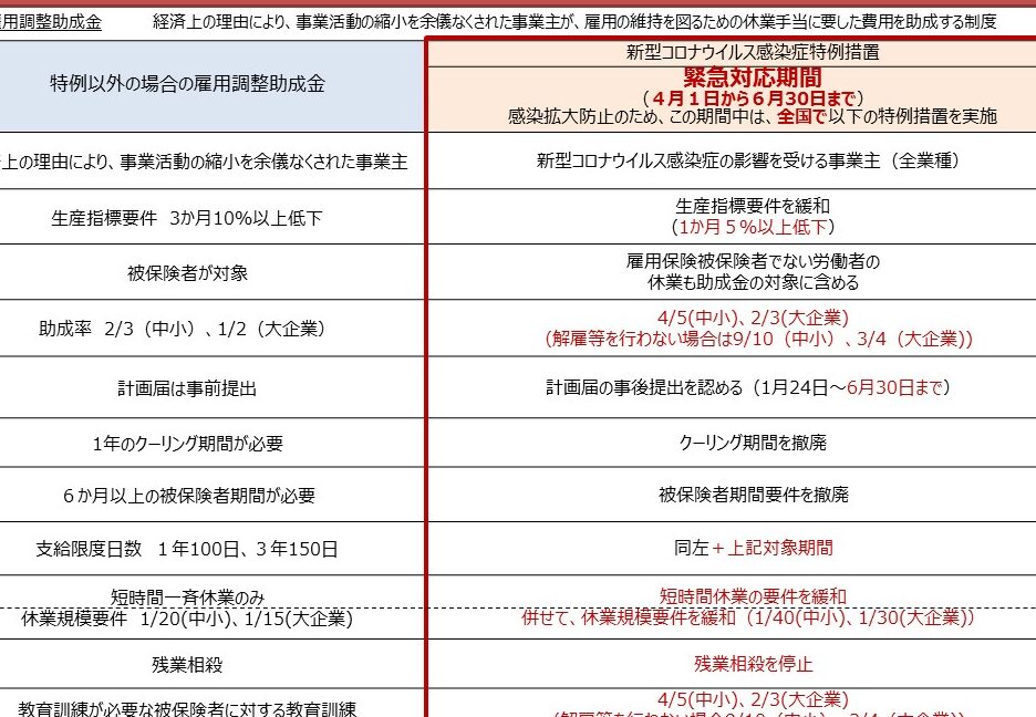 - 雇用維持: 従業員の解雇を避けることで、雇用の安定を図る。