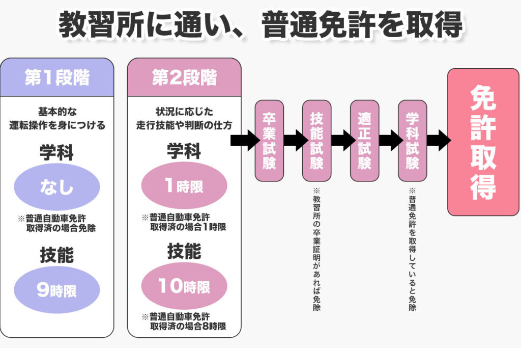 - 手続きがスムーズ:普通免許を持っている場合、学科試験が免除されます。