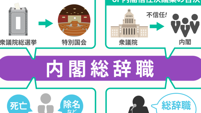 内閣総辞職は、政府の成り立ちにおいて重要な出来事です。以下に、その特徴を示します。