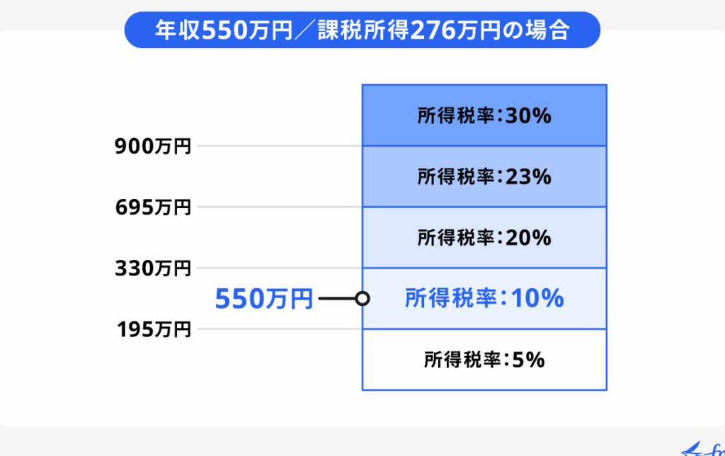 税率は累進課税制度に基づいて適用され、収入が増えるほど高い税率が適用される。具体的な税率は以下の通りだ。