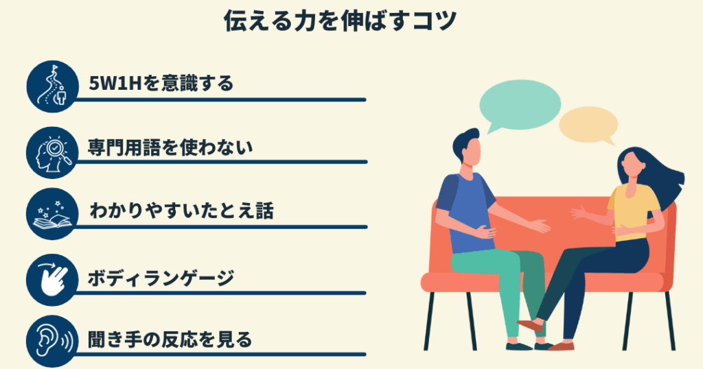 伝え方には様々なテクニックがあり、効果的に自分の意図を相手に伝えるための方法やポイントが存在します。ここでは、特に意識すべきテクニックを詳しく見ていきます。