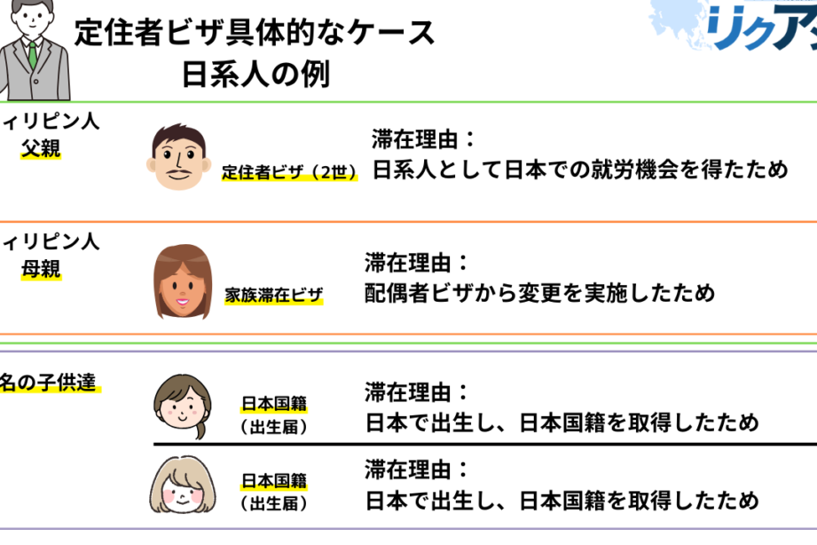 ビザ制度は、定住者が日本に長期間滞在するための手続きを規定します。以下の種類があります。