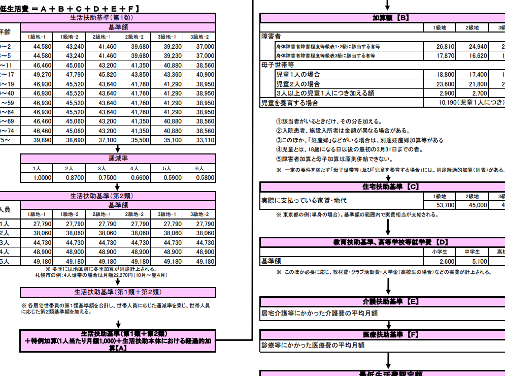 地域差:生計基準額は地域によって変わり、都市部では高く、地方では低い傾向があります。