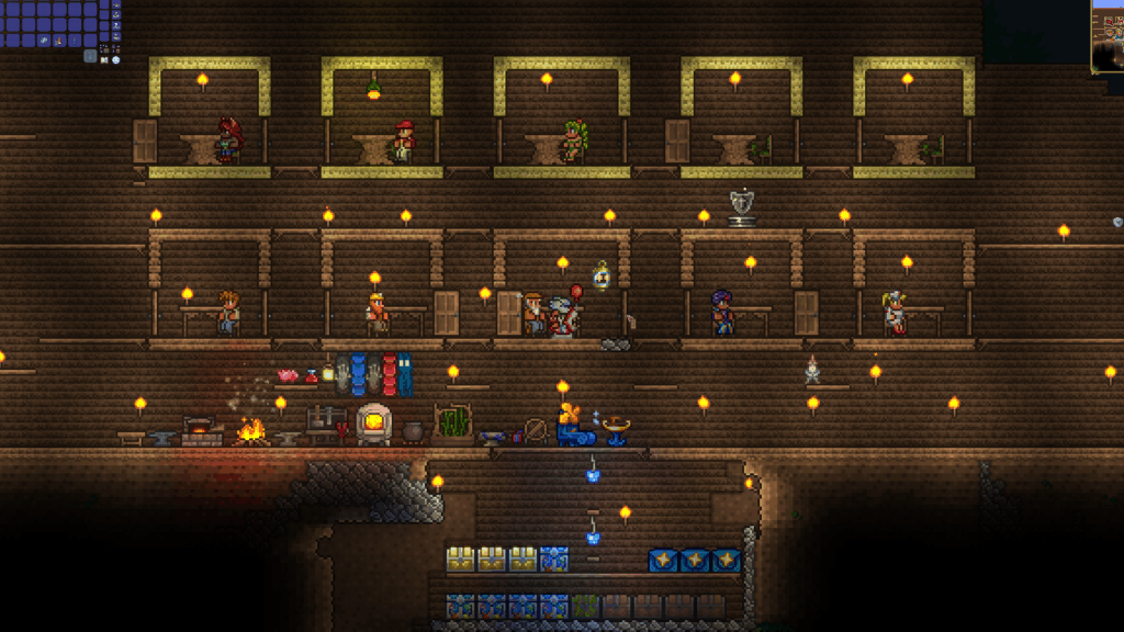 NPCの販売するアイテムやクエストは私たちの成長を助けてくれます。また幸福度を管理することでより良いサービスを受けられるようになります。私たちがNPCとの関係を大切にすることでテラリアの世界がさらに魅力的になります。